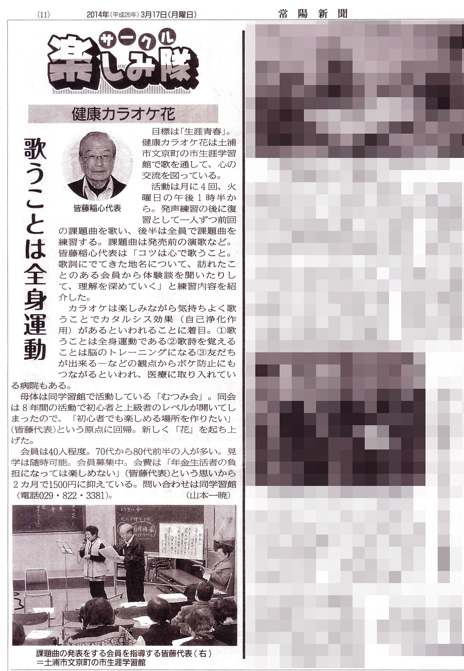 2014年3月17日 発行 つくば市 土浦市を中心とした地域のニュース情報紙「常陽新聞」サークル楽しみ隊に掲載されました。