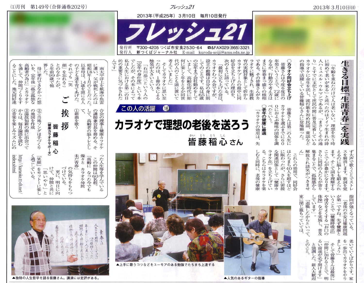 2013年3月10日 発行 つくば市の地域情報紙「フレッシュ21」に掲載されました。